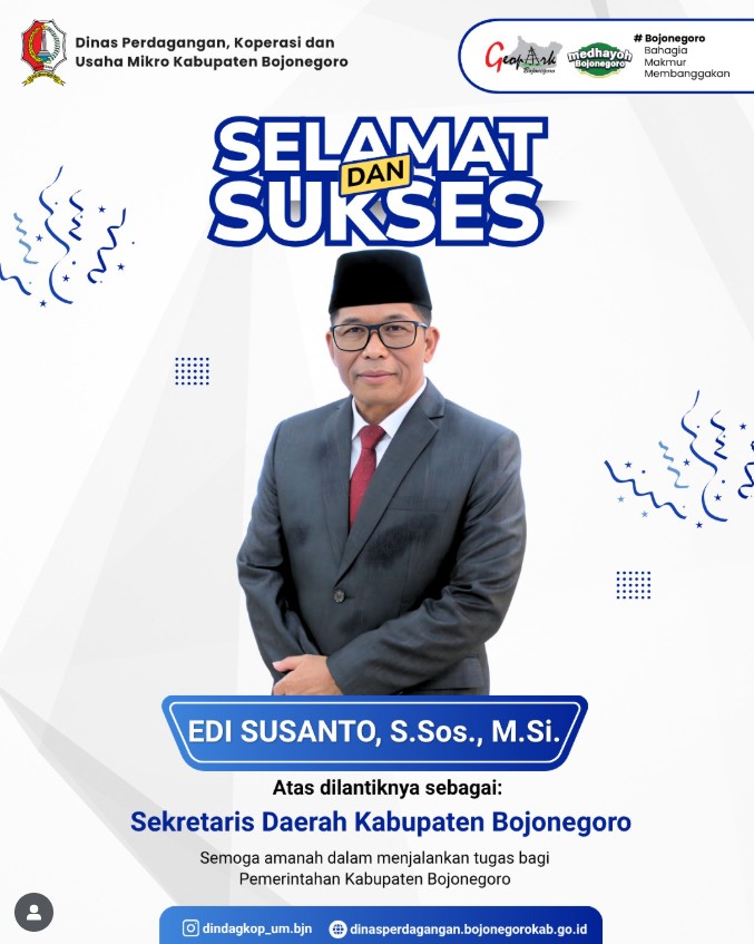 Selamat dan sukses Bapak Edi Susanto, S.Sos.,M.Si atas dilantiknya sebagai Sekretaris Daerah Kabupaten Bojonegoro