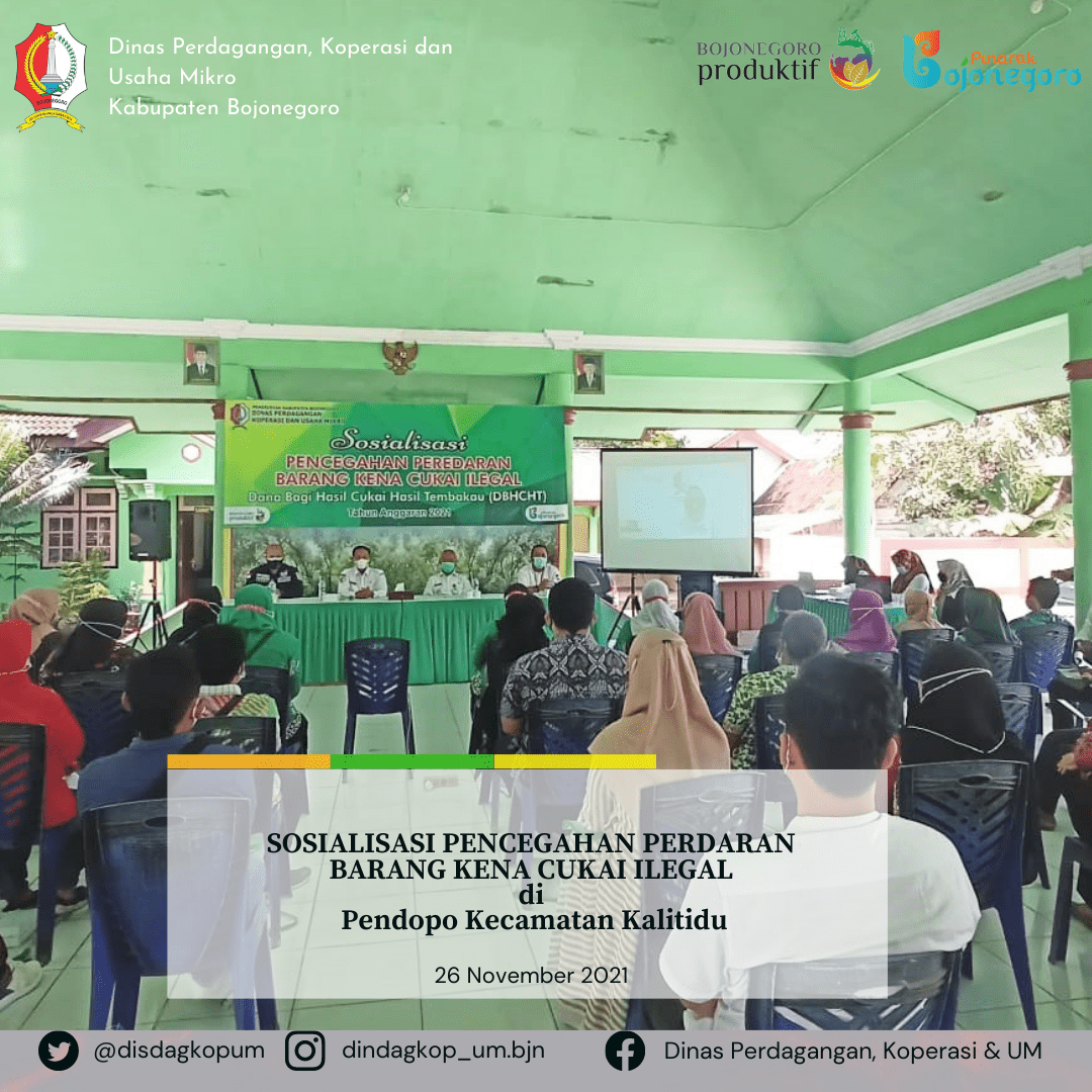 Dalam rangka meningkatkan pemahaman masyarakat dan pencegahan peredaran barang kena cukai ilegal di kabupaten Bojonegoro, maka Pemerintah Kabupaten Bojonegoro melalui Dinas Perdagangan,...